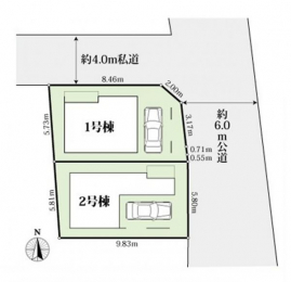 | 接道状況 | 接道: 北 私道 道路幅: 4m 接道: 東 公道 道路幅: 6m |